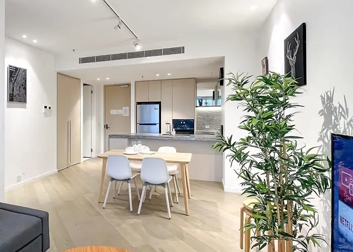 The apartment is in the St Kilda Road district, within a few blocks of Fawkner Public Park. The 297.3 m Eureka Skydeck Skyscraper is around a 15-minute ride from this apartment.